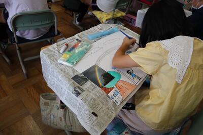 5年生の図工の授業では、1枚の写真からイメージを広げて、作品を創り上げています。色や形、つながりを考えて、個性豊かな作品になりそうです。完成がとても楽しみです。