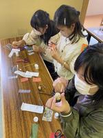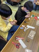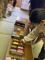 12時30分、体験会場である「みどりコミュニティセンター」に到着しました。最初に木目込み細工の歴史や、使う道具・材料などの説明がありました。
