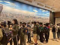 14時30分、予定どおり東京スカイツリーに到着しました。バスから降りると、子供たち一人一人にチケットが渡されました。スカイツリーのキャラクター「ソラカラちゃん」が写っているチケットはレアだということで、子供たちは自分のチケットに写っていないか夢中になって探していました。