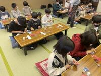12時30分、体験会場である「みどりコミュニティセンター」に到着しました。最初に木目込み細工の歴史や、使う道具・材料などの説明がありました。
