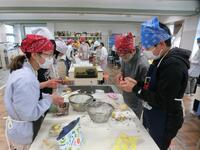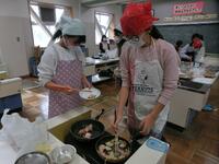 「ジャーマンポテト」と「野菜のベーコン巻き」が完成しました。チーズやニンニクなどをトッピングしたグループもあったようです。みんなとてもおいしそうに食べていました。