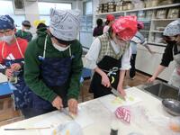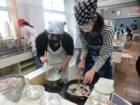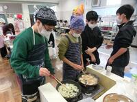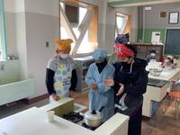 コロナ禍ではありますが、感染症対策を行った上で初めての調理実習を行いました。今回は、煮干しからだしを取るみそしる作りに挑戦しました。だしの香りを楽しみながら協力して作ることができました。