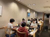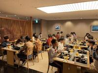 18時、お待ちかねの夕食タイム。場所はホテル内の和食レストランですが、メニューは洋食です。実行委員さんのいただきますの合図で、みんな一斉に食べ始めました。