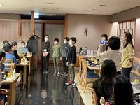 6時半起床、7時には全員が元気に食事会場に集まり、朝のつどいが行われました。