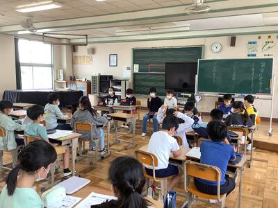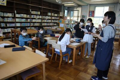 「ほかに何かないかなあ?」「そうだ、この間もらった本に載ってるかもしれない!」と言って、『郷土読本 みしま』を開いて調べている子もいました。