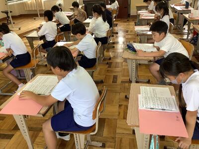 不審者が校舎内に入ってきた時を想定した「防犯訓練」が行われました。5年2組に入ってきた不審者に職員数人で対応している間、子どもたちは緊張した面持ちで昇降口から校庭へ避難しました。避難を終えた後、校長先生からは、この訓練を経て①学校をきちんと整頓すること②日頃から人の話をよく聞くこと③校内や地域の方へのあいさつを行うこと、というお話がありました。また解散後すぐに、5年部ではその場で防犯指導が行われました。