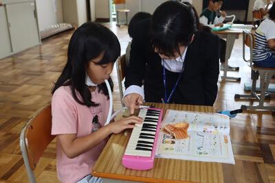 2年生の音楽の授業では、教育実習の先生と一緒に授業です。今日は「ドレミで遊ぼう」の学習です。ドレミ体操では、子供たちが身体全体で音の高さを感じとり、楽しみながら学習する様子が見られました。「かっこう」の歌をリズムで感じたり、ドレミ体操で身体全体で表現したりしました。鍵盤ハーモニカでは、指使いにも気をつけて、練習することができました。3週間の教育実習も今日が最終日です。5時間目には、クラスでありがとうの会を開きました。子供たちからの歌のプレゼントやゲームで感謝の気持ちを伝えた子供たち。お別れはさみしいですが、笑顔でまた会える日を楽しみにしましょう。