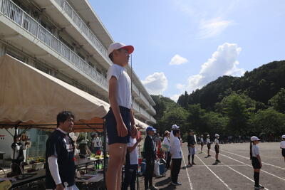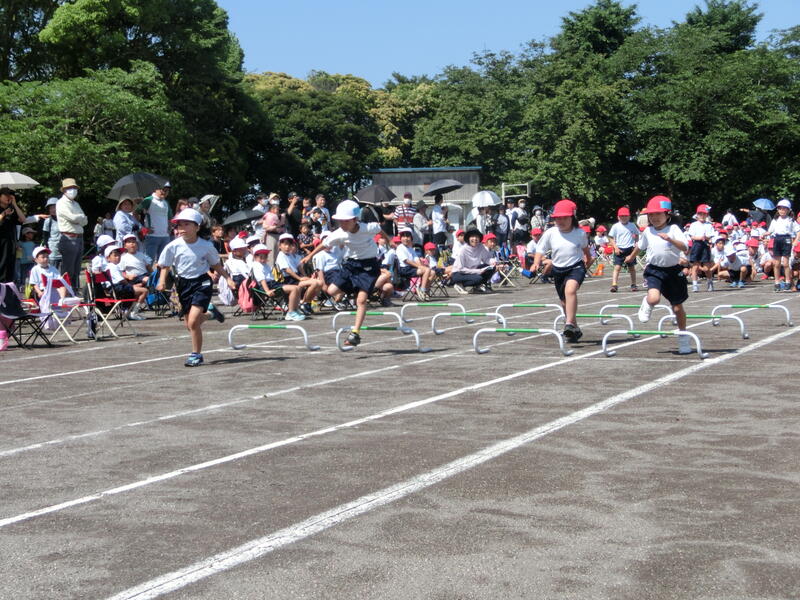 ラジオ体操後の徒競走「やってみよう!Let's run 120m!」では、120m走という長い距離でしたが、最後まで走りきる姿がとてもかっこよかったです。