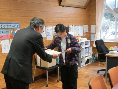 「税の絵はがきコンクール」や「税の標語コンクール」で「市長賞」等の素晴らしい賞に輝いた児童の表彰式が、校長室で行われました。おめでとうございます!