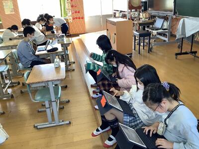 タブレットを使ってたくさんの作品を見て学びを深めていた1年生でした。
