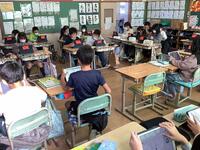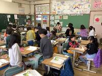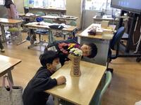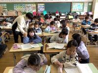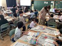 1年生は、教科書の挿絵に合うお話を自分でつくり、発表していました。