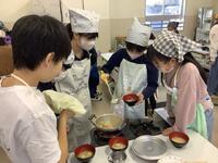 2回の調理実習と自然教室の飯ごう炊さんを経て、手際よく調理することができ、写真を撮りに行ったころにはすべての班が配膳する段階でした。