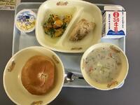 給食委員会の仕事をご紹介します。本日の担当は6年1組でした。