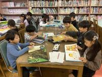 今日は図書館で物語を読む勉強をしています。