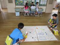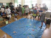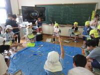 「ころころ動くいす」というのがゲームのおもしろさを高めていたように思います。思うように的に当たらなかったお友達もいるんじゃないかな?空気でっぽうで的をねらうという発想、これまでの理科の学習がいかされていてよかったと思います。
