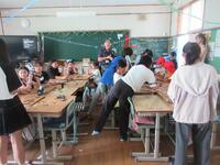 こちらのクラスでは体育でボレーボール型のゲームをしていました。