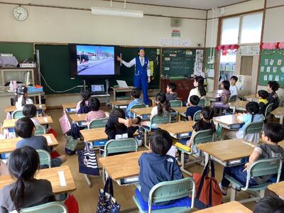 交通安全指導員の方に来ていただき、1、3年生を対象とした「交通安全教室」を実施しました。