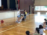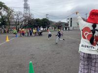 来月の運動会に向けて、速く走るこつを真剣に聞いていました。また、相手が取りやすいパスの出し方を学び、その後チームに分かれて試合で行いました。この事業をきっかけにサッカーに興味をもつ子が増え、授業でサッカーをするのを楽しみにしていました。