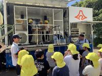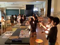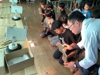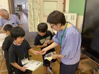 子供たちは、鏡で光を反射させる実験に興味津々です。