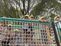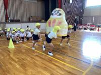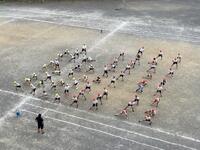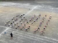 こちらのクラスでは、長い竹の棒をもって4人で走る練習をしています。