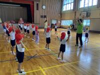 去年の6年生を送る会でおどった「スマイル」を1年生に踊って見せてあげました。一緒に踊って、表現の楽しさを感じ取っていたようです。