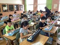こぎつねこんこんを鍵盤ハーモニカで演奏する学習をしていました。