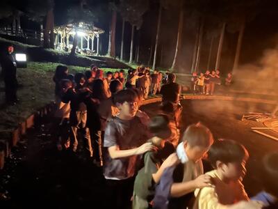 儀式は厳粛に、各班の出し物は大盛り上がりのキャンプファイヤーでした。