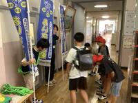 毎朝やっているあいさつ運動ですが、今日はのぼりを掲げて、いつも以上に元気なあいさつの声が響いていました。