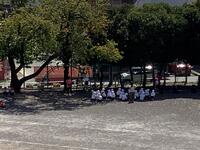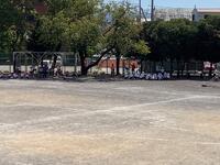 子供たちは「直径60mの円」をどうかけばよいのか、考えています。