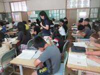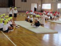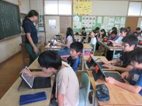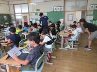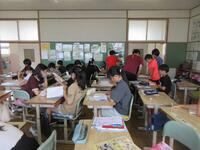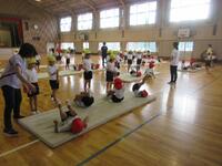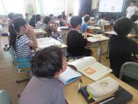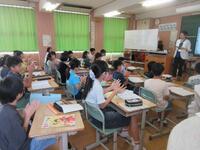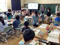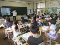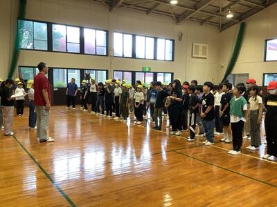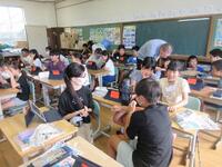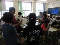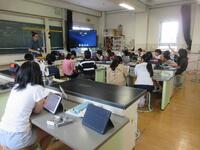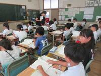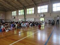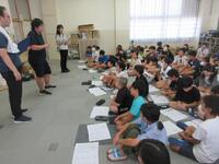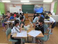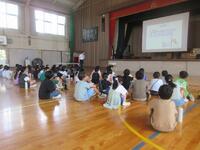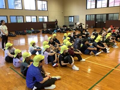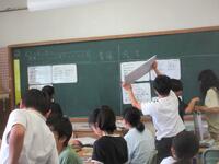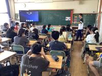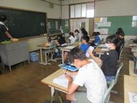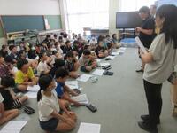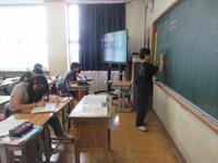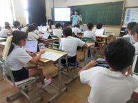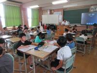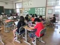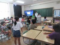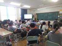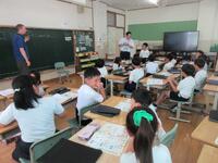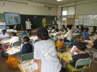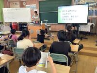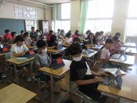 6年生は体育でリレーをする予定でしたが、暑さ指数(WBGT)が規定値を超えたため、教室でバトンパスのポイントを確認していました。
