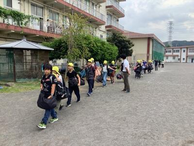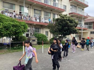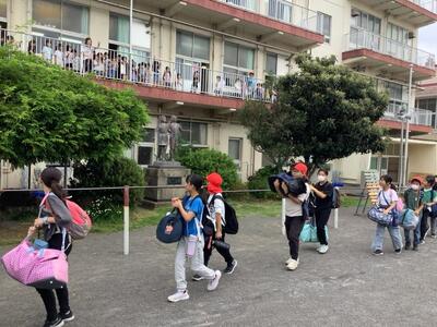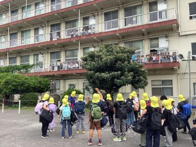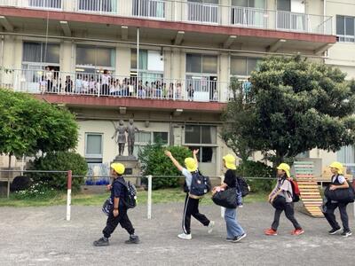 学校で開校式をおこない、下級生のお見送りを受けながら箱根の里へ出発しました。