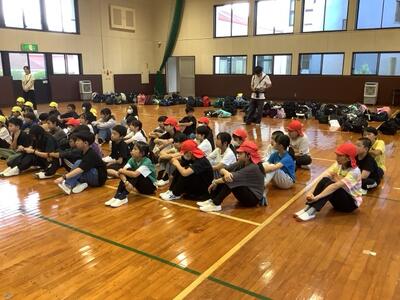 現在、大雨警報は発表されていませんが、台風の接近に伴い、大雨警報の発表、線状降水帯の発生、下校時間帯にかけて大雨が心配されます。児童の安全を考え、本日は休校とします。8日(月)の予定については、昨日中にお子様に連絡してあります。