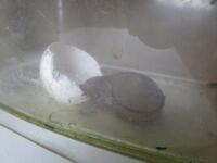 昨日、カタツムリのえさとして「たまごのから」を与えて