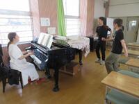 ピアノの練習をしている先生の伴奏に合わせて・・・楽しそうですねぇ。