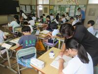 理科の授業で、花の中はどうなっているのかという観察をしています。