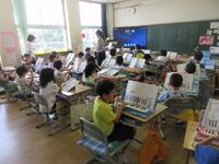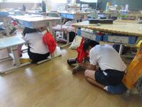 鍵盤ハーモニカのドレミを使ってふく練習をしています。