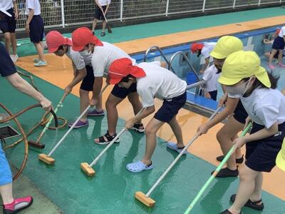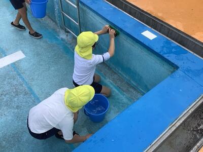 6年生がプール清掃を行いました。