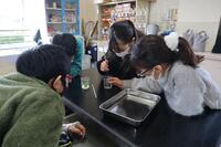 5年生の理科の授業では、「物の溶け方」について学習しています。「水の温度を上げると、食塩の溶ける量が多くなるのだろうか。」の課題に対して、根拠を持って仮説を立て、実験を通して新たな発見をしたり、理由について考えたりしています。