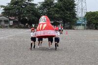 2年生は、だるま運びの練習に取り組んでいます。友達と力と心を合わせて、じょうずにだるまを運びます。