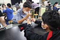 6年生の理科の授業では、グループごとに実験をしています。「だ液がでんぷんを変化させるか」まずは予想を立て、実験の結果から自分の考えをまとめていきます。自分の考えを伝え合うことで、考えが深まっていきます。