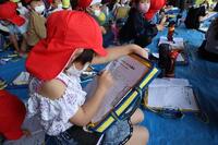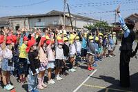 1年生が防犯教室を行いました。「いかのおすし」の約束を守り、万が一不審者に遭遇してしまったとき、どのように自分の身を守れば良いか、学習しました。「かけこみ110番」のお家に「助けて。」と大きな声で叫びながら、逃げる練習もしました。