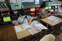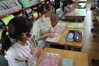国語の授業のようすです。1組では、新しい漢字の学習をしています。書き順や使い方、漢字のつくりに着目して気付きを発表し合ったり、漢字ドリルで確認したりしています。2組では、「2年生になって、はじめたこと」を伝え合う学習活動です。まずは、自分を振り返り、2年生になってはじめたことは何があるか考えました。自分のことをノートに書くことで、伝える内容を整理していきましょう。