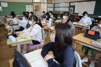 5年生の音楽の授業では、教室の換気や座席の間隔を空ける等の感染症対策をしながら、リコーダーの練習を行っています。指づかいに気をつけて、きれいな音色の重なりを意識しながら取り組んでいます。