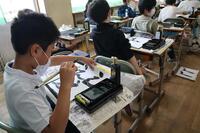 5年生の家庭科の授業では「裁縫道具」をつかって「はじめてのソーイング」の学習をしています。今日の授業では、これから使うソーイングセットの道具について確認しました。その後は、練習布をつかってソーイングの練習です。