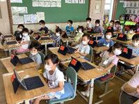 クラスルームの設定(先生から子供たちの画面が見える設定)やメタモジ(学習のワークシートを配布するソフト)の設定をICT支援員と一緒に行いました。