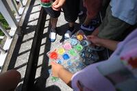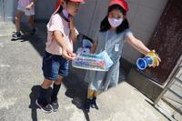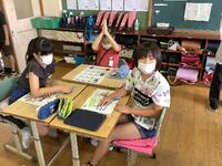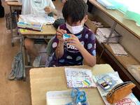図工の学習で、子ども達がパックに素敵な色を塗り、水を入れて太陽の光を当て、光のプレゼントを楽しんでいます。「わあ、きれい。」「うつってる。」「にじみたいだね。」「きらきらする。」感動、感激の言葉が広がります。