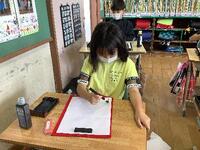 3年生から書写で習字を学習します。筆を使う授業が始まります。