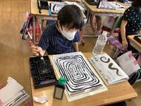 太筆にたっぷり墨を付け、ぐるぐるとなるべく続けて書く学習です。