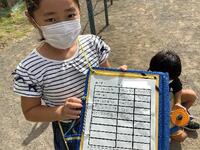 一歩あたりの歩幅や、10mで何歩なのかを調べた後、鉄棒や木の幹などグループで和やかに活動していました。