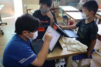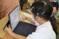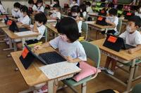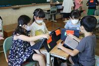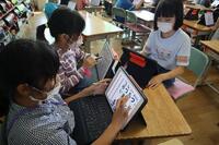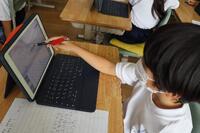 1年生が、タブレットを使って、文字入力の学習です。Metamojiのワークシートにひらがなで題名や自分の名前を打ち込んでみました。みんな上手にできました。